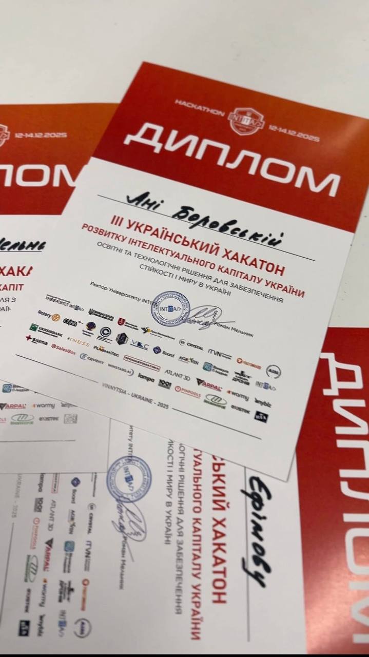 🙌Висловлюємо щиру вдячність Андрію Гижку за підтримку соціальних проєктів та організаторам Хакатону за високий рівень підготовки, професіоналізм і натхнення. Ви створили ефективну платформу для обміну ідеями, командної роботи та розвитку інтелекту України.💙💛